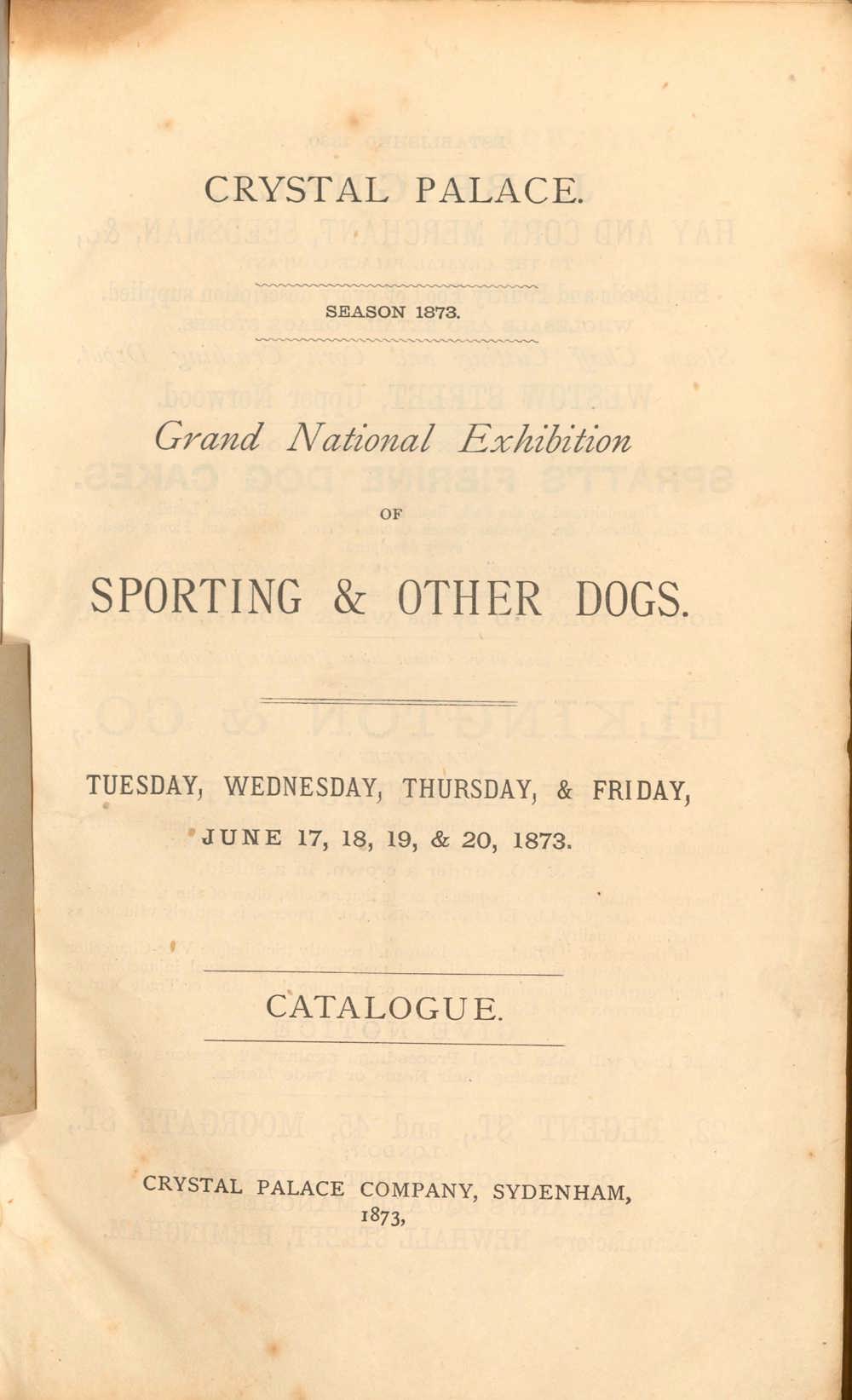 The Kennel Club holds its first show under its own name on 17th-20th June at The Crystal Palace, Sydenham with an entry of 975 dogs, divided into Sporting & Non-Sporting. The show was held at The Crystal Palace but moved to Olympia when The Crystal Palace burned down in 1936.