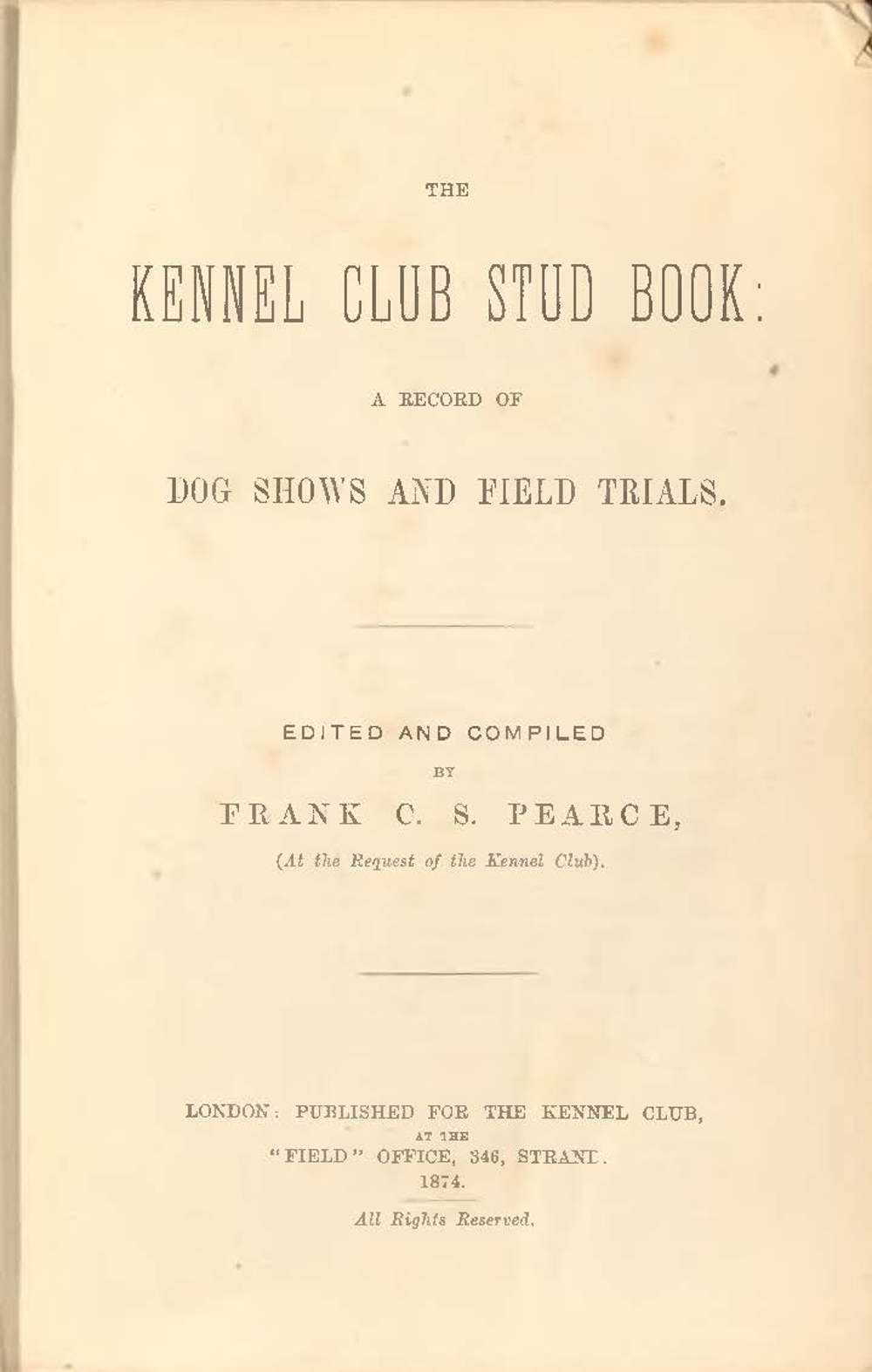 The First Kennel Club Stud Book is founded, showing results from dog shows starting from 1859 and field trials from 1865. Pedigrees and details of breeders and owners were shown, where known. The Stud Book also contained The Kennel Club’s own rules for the Club itself, for conducting a dog show and for conduction a field trial. These rules emphasise fair play and canine health including vet checks at shows. Rules evolve rapidly over the next 30 years until 1904. First annual general meeting held on 1st December at The Great Western Hotel in Birmingham.