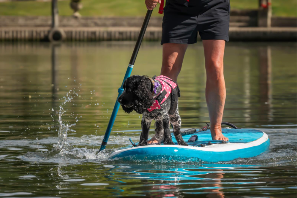 As long as you're confident that your pup will remain calm, paddleboarding is a great activity on a hot day to do with your dog. Whether you already own a board or need to rent one, a smooth glide across a lake or lock can be a peaceful day out in the sun. Before you hit the water, slowly introduce your dog to the board along with some treats for encouragement and ensure your dog has the right lifejacket for them!