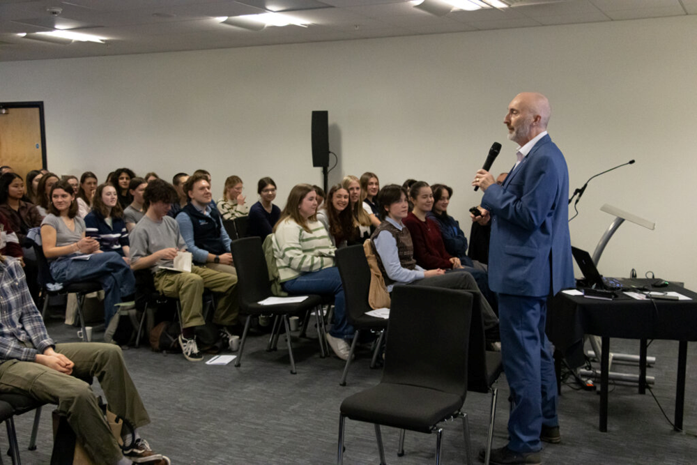 Over 120 vet students attended two expert-led lectures from Dr Alison Skipper (Veterinary and Research Advisor at The Kennel Club), exploring the critical role of a strong breeder-veterinarian relationship, and Dr Dan O’Neill (Senior Lecturer at the Royal Veterinary College and Chairman of the Brachycephalic Working Group) presenting on VetCompass and the importance of using veterinary evidence to evolve shared human beliefs about dog health and welfare.