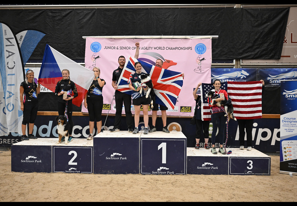 Senior Agility Team GB celebrate medal-winning performance at Senior Agility Open World Championships.