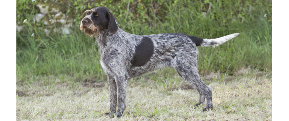 A larger, more rugged version of his smooth haired cousin, the German Wirehaired Pointer has a harsh bristly coat to give him protection in rough cover and rough weather. The German Wire Haired Pointer was developed from several wire-coated pointing breeds popular in Germany in the 19th century. It has been suggested that French Griffon blood was also used. The German Wire Haired Pointer is a rugged and indefatigable worker.