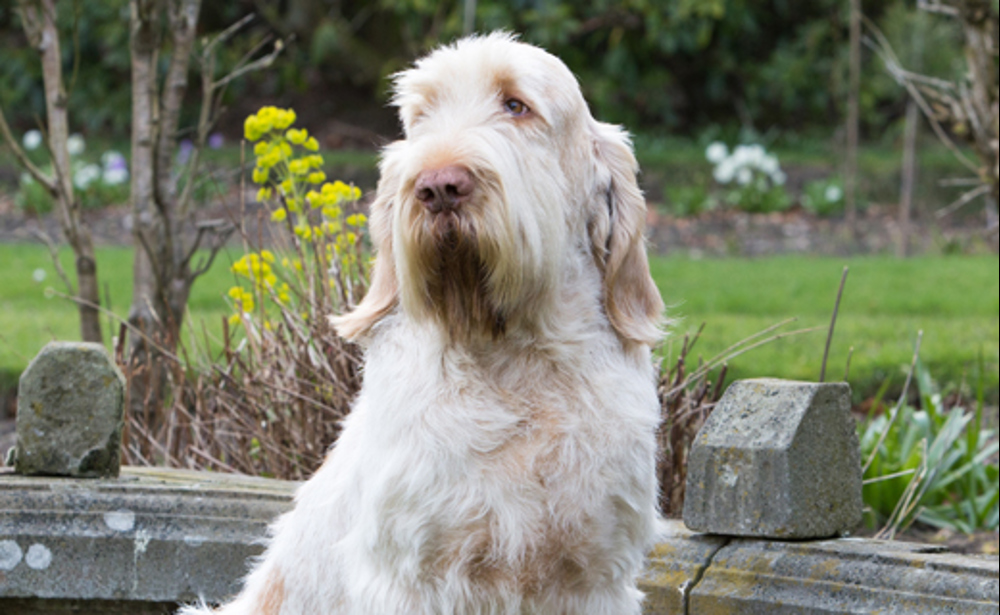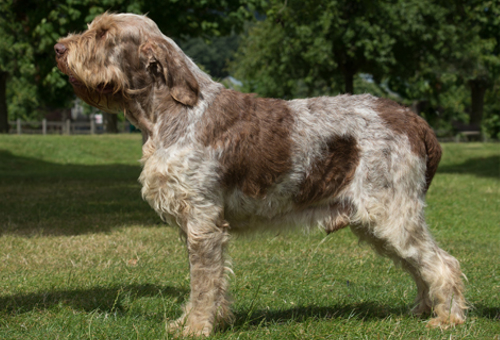 The Italian Spinone is hugely popular in his native country as an all-purpose gundog, his strong head with an almost human expression, his unique top-line and his thick skin and coarse coat making him instantly recognisable. His pounding trotting action gives him stamina rather than speed. An ancient breed of Italy, the Spinone was first seen in the UK in the early 1980s at the Game Fair and later he received recognition in the show-ring where he is now very popular. It is thought that his ancestry contains Italian Hound with perhaps some coarse-haired Segugio blood and perhaps Setter or Mastiff input, but there is much speculation on this.