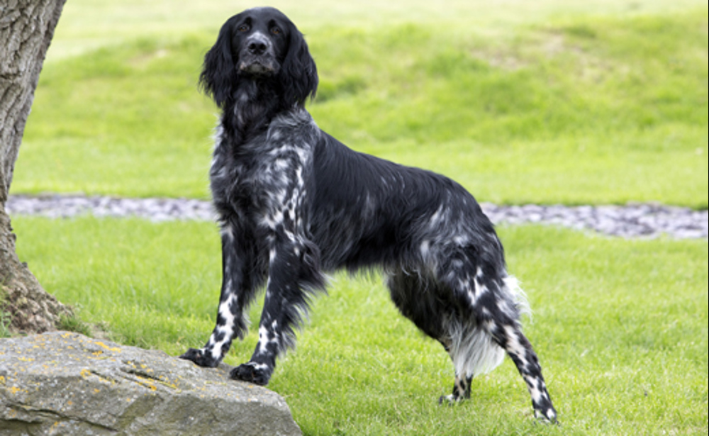 The Large Munsterlander was developed on the same root stock as the German Long Haired Pointer but selective breeding embedded the black/white colour as the breed's hallmark. He is an excellent versatile gundog. The first breed club was founded in Germany in 1919 and the breed was recognised by The Kennel Club in 1971.