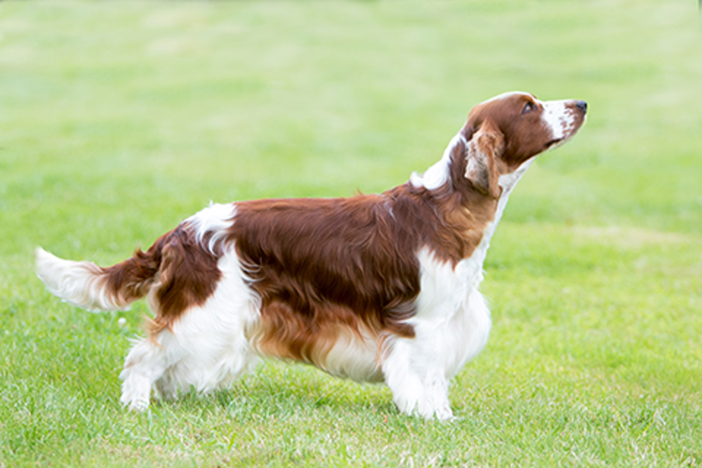 The red and white Welsh hunting dog was chronicled in Welsh literature in the Middles Ages and it is thought that these provided the ancestry for the Welsh Springer Spaniel. The breed comes only in this colour. At one time the breed was simply called a Welsh Spaniel and certainly one of these red and white spaniels played a part in establishing the parti-coloured cocker spaniel. The breed was recognised by The Kennel Club in 1902.