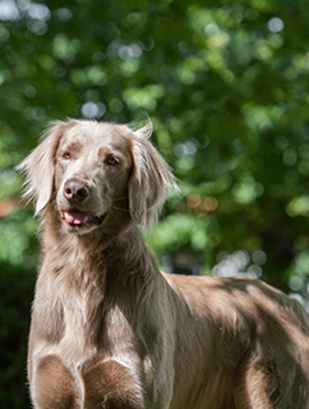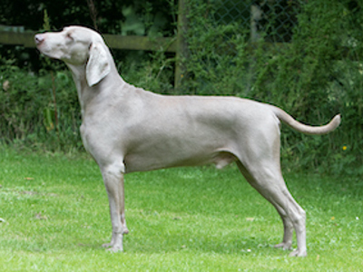 The silver-grey coat of the Weimaraner has earned the epithet of the “Grey Ghost”. The breed was created at the German Court of Grand Duke Karl August of Weimar where it was developed as a pointing dog for the nobility in the early 19th century but there is a dog of Weimaraner type in a Van Dyke portrait three centuries before this date.