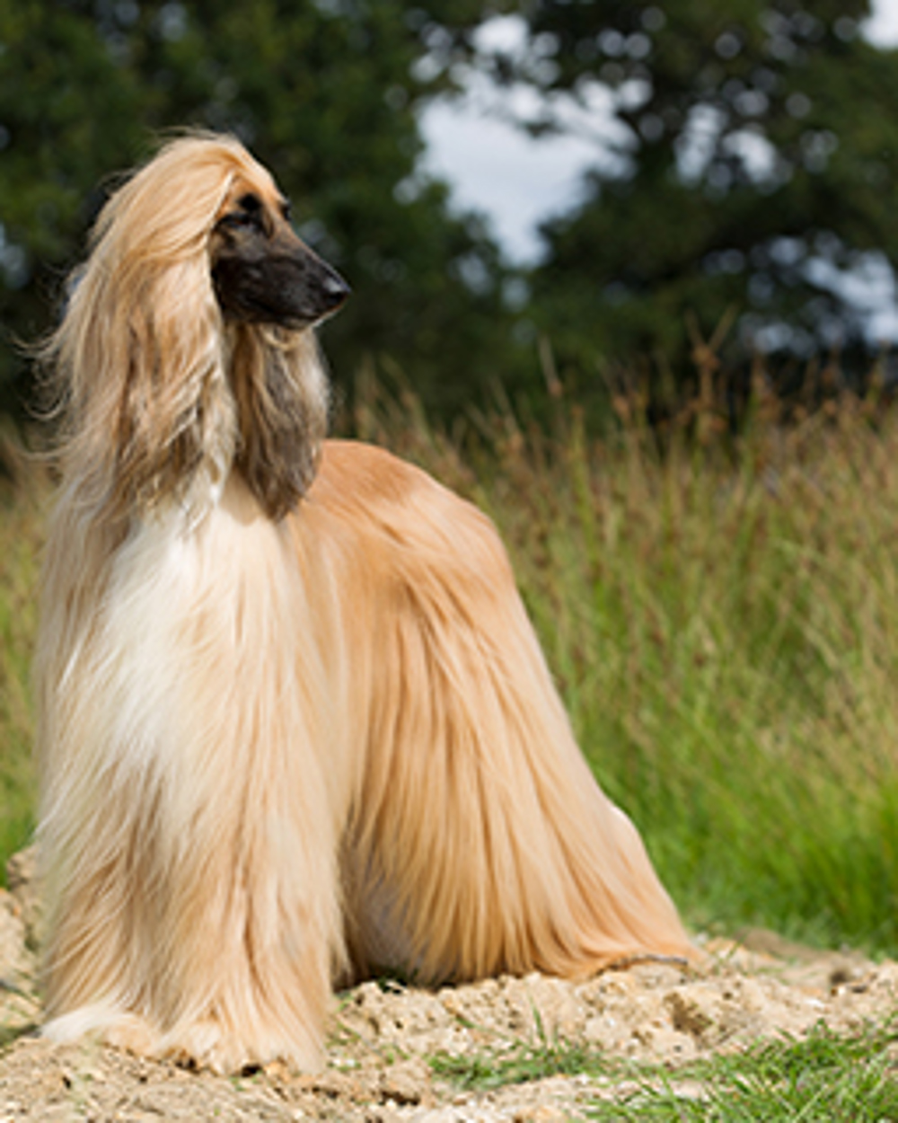 Elegance in movement and carriage topped by a glamorous coat typify the sighthound from Afghanistan. The size range covers the different types used for different terrains: the desert plains or the mountains. Long limbs, a long punishing jaw and amazing speed equip him for his job of hunting deer, gazelle and smaller game like the hare and the fox. It is thought that the Afghan may well have been developed from Salukis brought to Afghanistan from neighbouring Persia and the longer coat develop as protection against the cold environment of the mountainous regions of Afghanistan.