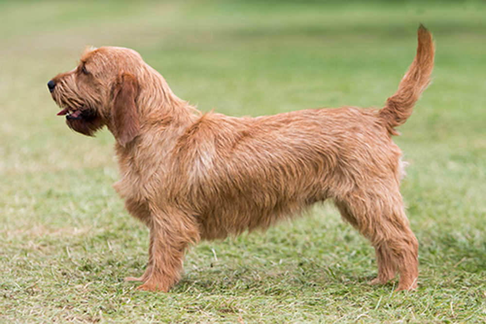 Reddish fawn and harsh coated, the Basset Fauve was developed in Brittany. He is a scent hound and is hunted in 'couples' and small packs.