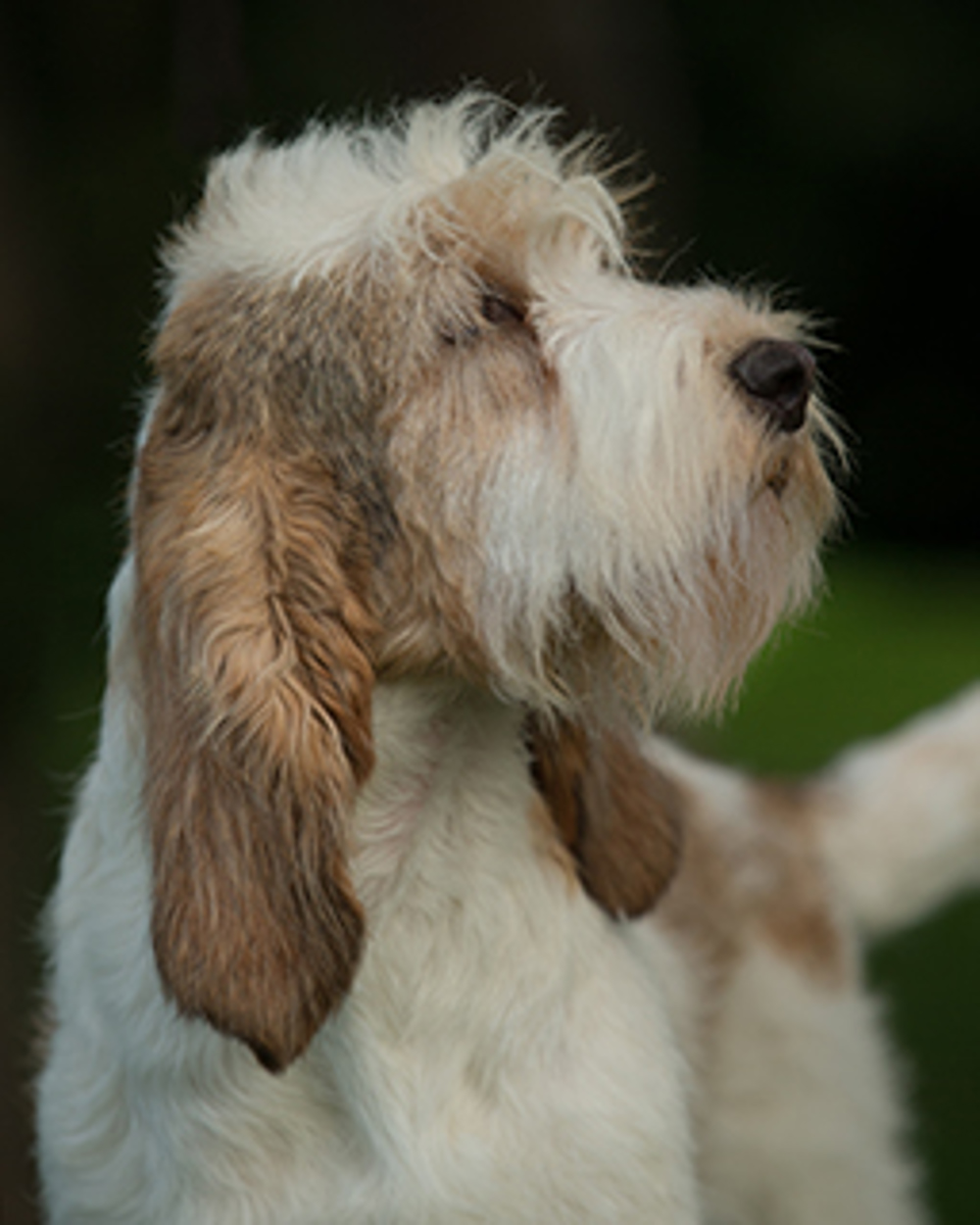 The tallest of the Basset breeds, the Grand (GBGV) is built on long lines: the longest legs of the Basset family, the longest body, longest ears and a noble head. He is rough coated and should retain a rustic appearance. He was originally used for hunting hare and rabbit.