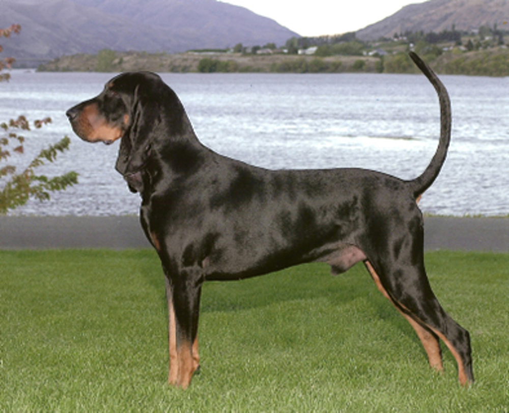 The racoon was a source of meat and fur for the early colonist and hence the dogs that could hunt them became much valued. The Coonhound was developed to track the racoon by scent and the scenting prowess of the Coonhound are immense and he gives voice when on the trail, is capable of going through water. Whilst the Black and Tan Coonhound does have the courage to kill, he often ends up “treeing” the racoon - that is holding the racoon at bay when it takes refuge up a tree.