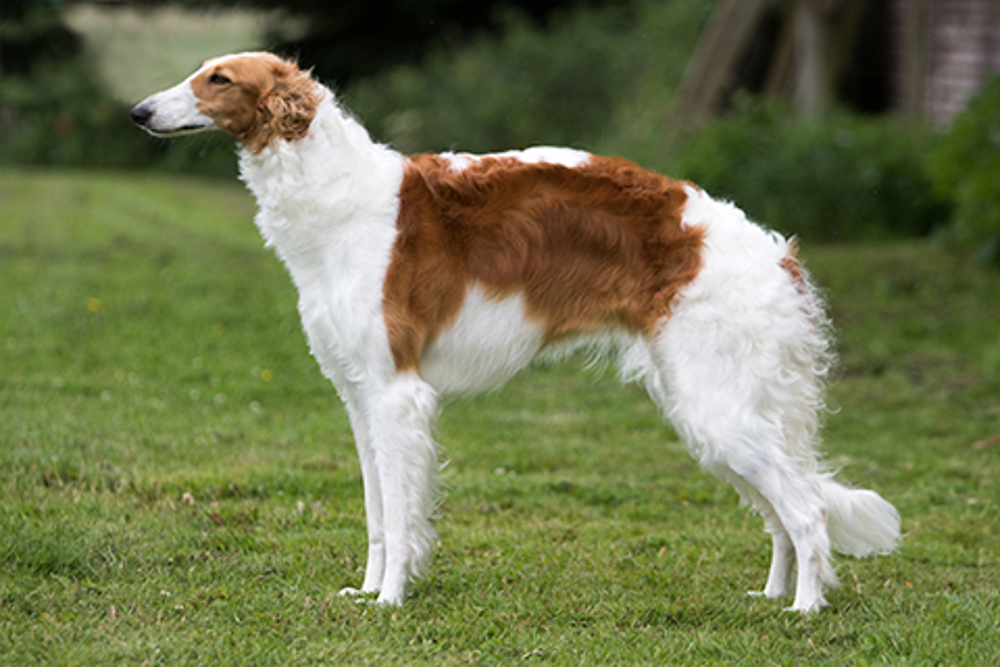 The Wolfhound of the Russian Aristocracy, the Borzoi's elegant curvaceous outline and luxuriant coat and long, lean head make him a memorable and imposing sight. The word Borzoi means 'swift'. Borzois hunted in pairs and held the wolf down until the hunters arrived. The breed was well established in Russia by 16th century and was probably developed from Greyhound type dogs crossed with long haired sheepdogs and imported Irish Greyhounds and wolf dogs.