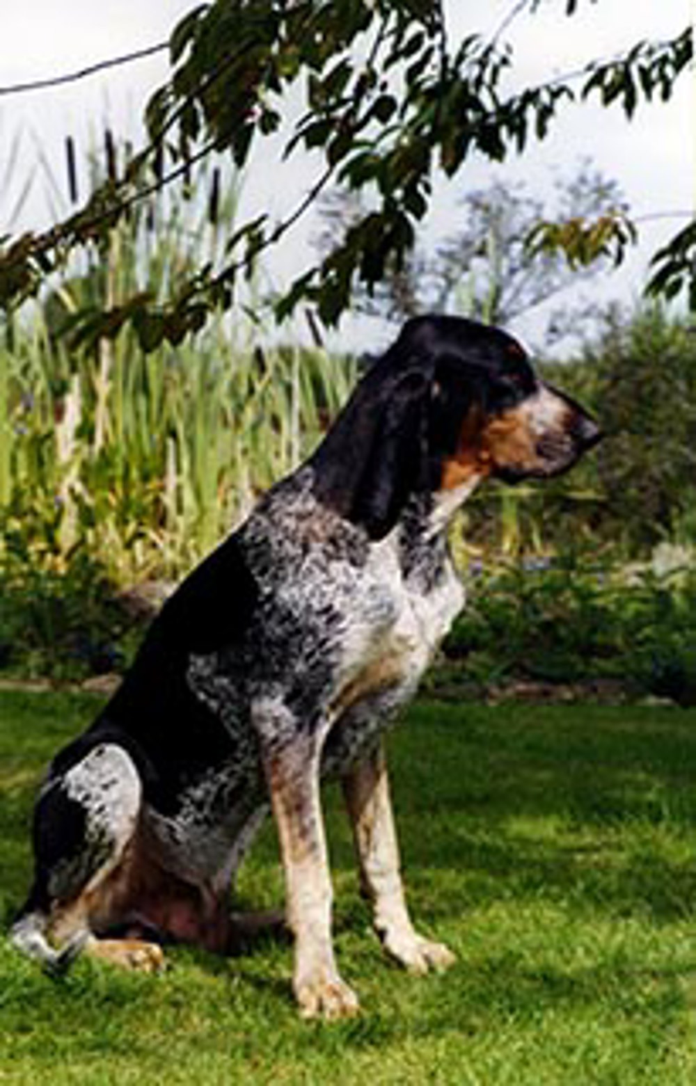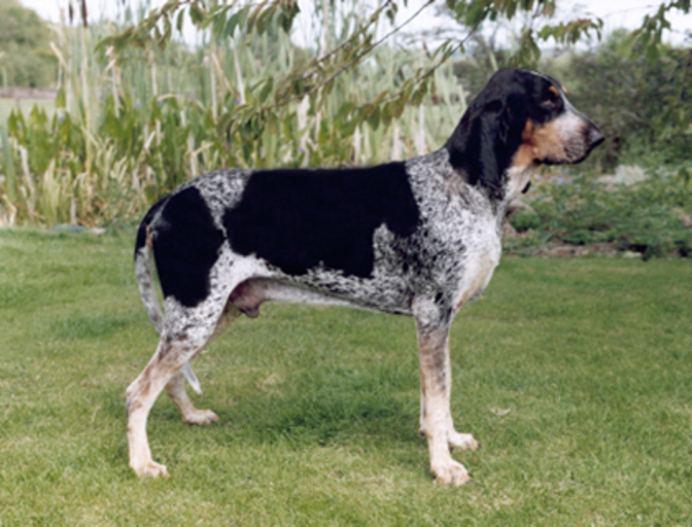 This long legged aristocrat of the French scent hounds was used originally for hunting wolves, and more recently for hare. Like many of the French Hounds he came to England with the French forces during the Norman Conquest in the 11th century. Like the Basset Bleu de Gascogne he has the distinctive mottled colouring which gives him the 'bleu' of his title.