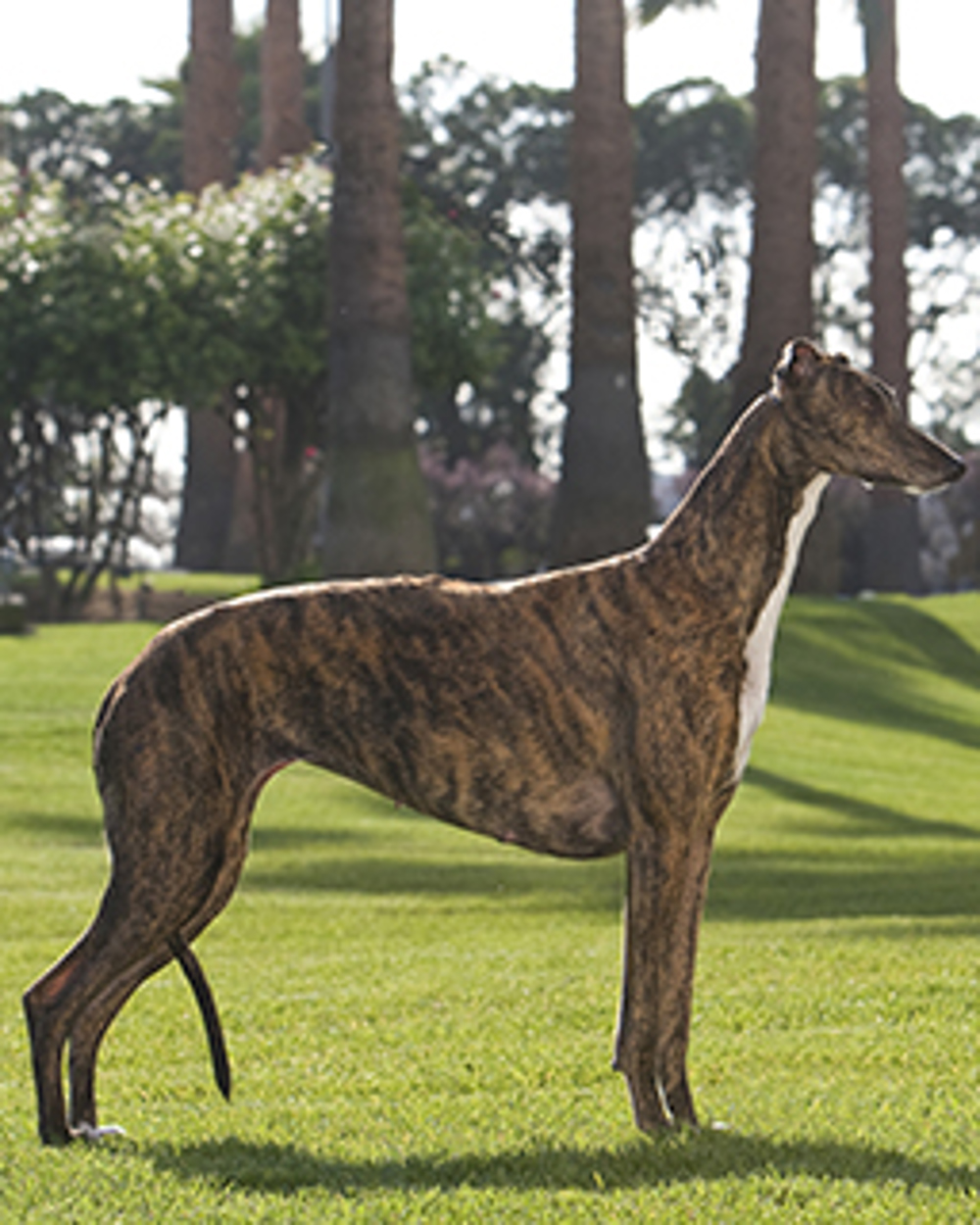 Long legged hounds of greyhound type were depicted on the walls of Ancient Egyptian tombs and it is thought that these were the prototype of the sighthounds. These dogs with athletic streamlined bodies and acute sight were soon popular throughout Europe for their hunting prowess. The Greyhound was developed in Britain and in the Middle Ages a law was passed stating the only royalty and nobility could hunt with greyhounds, such was their prestige. The Greyhound seen in the show ring is larger and heavier than the racing track greyhound. The sport of racing greyhounds was first held on an oval racetrack in 1926.