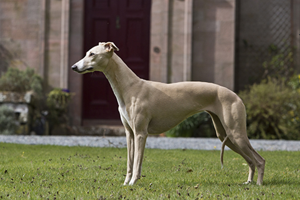 Dogs of a Whippet type were common in the Middle Ages and genetic studies in the 21st century have determined that it originated from the Greyhound, a Celtic breed known to the Romans as Vertragus. By the 19th century, the Whippet was a recognisable breed, used for hunting small game and the extermination of vermin which the Victorians developed into a gambling sport. Whippet racing later became popular in the mining areas of the North and Wales but also in London and the Midlands. Early breed standards of both the Whippet and the Italian Greyhound refer to “a Greyhound in miniature” but the conformation of all three has developed along different paths. Although Whippet racing continues on a very minor scale, the breed is now hugely popular in the show ring where its elegant lines and smooth daisy cutting action has won many admirers. As a family companion, the Whippet is gentle and affectionate and enjoys the comforts of domestic life.