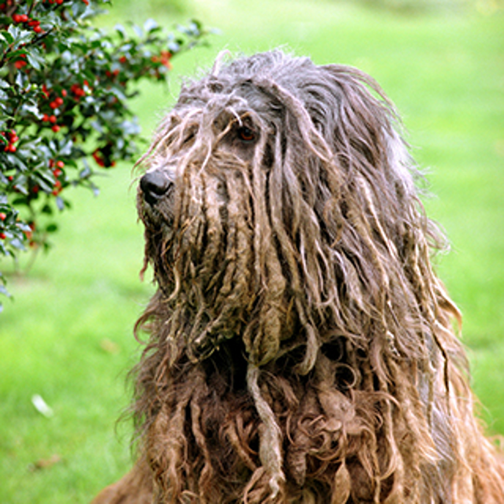 This ancient breed of sheepdog originates from the Italian Alpine region and takes its name from the town of Bergamo. Its distinguishing feature is its heavy coat which forms naturally into mats.