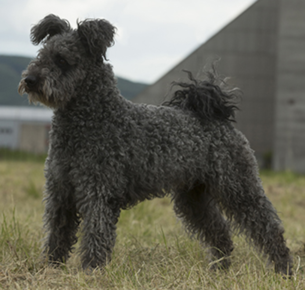 A newcomer to the UK, recognised in by The Kennel Club in 2015, the Pumi was developed in the late 17th and 18th centuries by the crossing the Puli type herding dogs with terriers and German Spitz. It is easy to distinguish the ancestry in the modern Pumi: his muzzle and tipped ears hark back to the terrier. The breed has shown its ability to work as a terrier and despatch vermin. The coat type nods recognition to the early Puli and herding dog coats. For some time the Pumi was regarded as a variety of Puli but 1920 Emil Raitsitz made a distinct separation of the two breeds and put into place separate breeding programmes. In this way the differences in type have become more defined and stabilised. The modern breed standard was drawn up in 1960.
