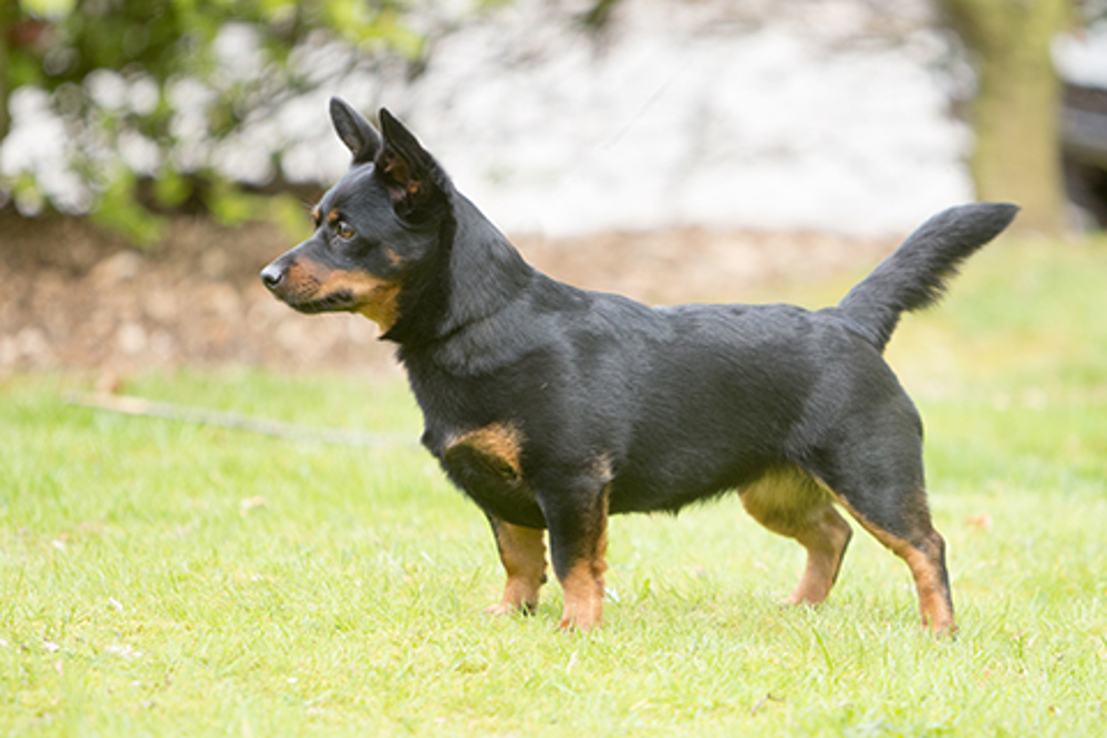 It is thought that the breed is the result of a cross between the Welsh Corgi and the Manchester Terrier dating back to the time when cattle were herded from Wales to the markets in the Ormskirk area. Indeed, the breed has been very popular in that area long before recognition from The Kennel Club and was known as the Ormskirk Heeler or the Ormskirk terrier. The breed is a happy combination, inheriting the distinguishing thumbs marks on the front legs from the Manchester and the lowness to ground and heeling instinct from the corgi. Lively, intelligent and long lived the Lancashire Heeler has gained some well-deserved popularity as a family dog.