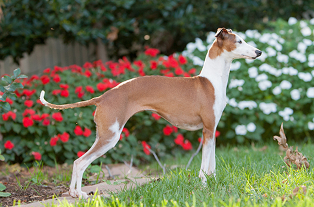 Here is a miniaturised sight hound which dates back to ancient Egypt and the Roman Empire. Dogs of Italian Greyhound type can be seen on tombs from these periods. The Italian Greyhound is fine boned and dainty but carries the elegant curving outline of the hound which played a part in its ancestry. The Italian Greyhound with its fine coat texture and elegant high stepping action has the exquisite quality of Dresden china.