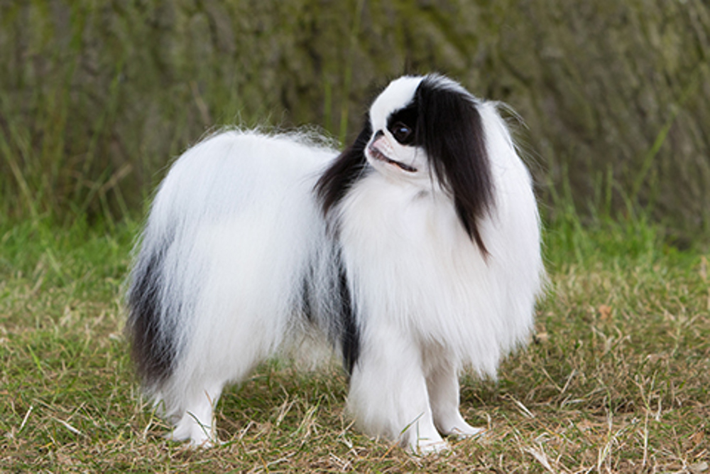 Despite its name, the breed's origins lie in China but a dog gifted by the Empress of China to her counterpart in Japan saw the breed introduced and developed in that country. The word 'Chin' means 'catlike' and perhaps this refers to the shape of his head and his fastidious cleanliness, often wiping his face with his paws. One of the features of the breed is his expression of astonishment produced by a small amount of white showing in the inner corners of his eyes. In recent years the breed has gained great popularity.