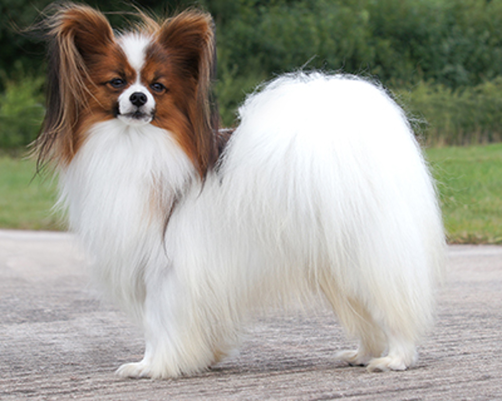 The dainty butterfly dog of France and Belgium is another described as a dwarf spaniel in Europe. The breed comes in two varieties – the Papillon and the Phalene. The well- feathered alert ears of the Papillon resemble the spread wings of a butterfly, hence the name. The drop eared Phalene is named after the folded wings of a moth. The continental spaniel title Épagneul Nain Continental (dwarf spaniel) might suggest drop ears in the original specimens. The Papillon and Phalene were hugely popular in the royal courts of Europe and were owned by many society ladies including Madame de Pompadour and Queen Marie Antoinette.