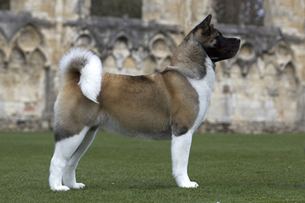 The largest breed in the Utility group originates in Japan where he was developed for hunting bear, deer and wild boar and, unfortunately, was also used in fighting competitions. The Akita as we see it today was developed in America, becoming stronger in bone and substance and makes an impressive sight. Like many of the Japanese breeds, brilliant and clear coat colours are much valued.