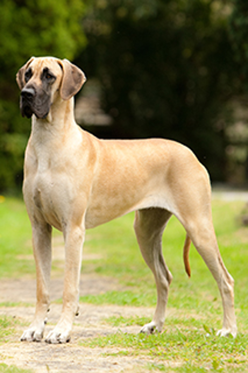 Despite the name, the origins of the breed lie in Germany where its ancestors were heavier in type and used as hunting dogs, hunting in packs for wild boar. Some breed enthusiasts still believe they are a sighthound and could be classified in the Hound group. Certainly the hunting instinct is still there, although the breed is now taller and more elegant than its ancestors. He has a degree of nobility which has led him to be described as the Apollo of dogs. Despite the size, the Great Dane makes a wonderful family dog: he has dash and daring but is also kind and loyal to his family.