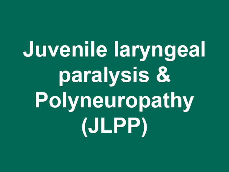 - Juvenile laryngeal paralysis polyneuropathy (JLPP)